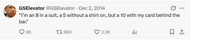 And then there’s social media. The famed mock Goldman Sachs Elevator tweets provided an exaggerated take on culture on the trading floor.